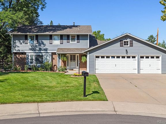 Beautiful, remodeled home in the desirable Columbine Knolls neighborhood, situated perfectly on a quiet cul-de-sac and just steps away from the Columbine Knolls pool, sand volleyball courts, tennis courts, and playground. This home has been meticulously maintained and cared for, clearly shown with modern updates throughout. As you pull up, notice a large front yard, covered front patio, and a 3-car garage for all your toys. Step inside and be greeted with hardwood floors, an open concept main level with vaulted ceilings and recessed lighting. Enjoy strolling through the updated kitchen with granite countertops, plenty of cabinets, under cabinet lighting and lighting inside the cabinets. Relax in the living room with your wood burning fireplace, or enjoy views of the large backyard through all the windows. Step outside onto a beautiful patio, complete with an outdoor TV, built-in bluetooth speakers, and an entertainment area for your guests. The backyard is lined with mature landscaping which provides privacy for your, almost .4 acre lot. Walk toward the back fence and find an enclosed garden area with your own chicken coup. Head back inside to find your primary bedroom/bathroom on the upper level along with 3 additional rooms and a full bathroom. The primary bedroom is a dream with a walk-in closet, custom built-ins, huge shower, and two vanities. Don't forget to check out the basement where you have over 700 sq ft. of finished space, perfect for entertaining guests or movie nights. Schedule your showing today!