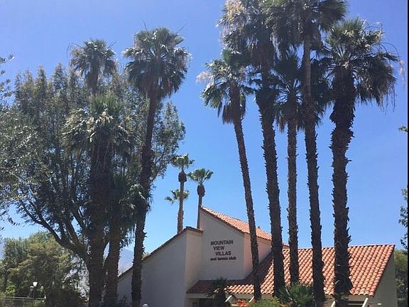 The moment you enter this two bedroom two bath condominium you sense immediately you have found a gem. It is offered turnkey and is move-in ready. The kitchen, bar and dining areas shine with custom cabinetry quartz countertops, and ample storage. Th ensuite primary and guest bathrooms have been completely updated with ceramic tile, custom cabinets, hardware and glass enclosures. The flooring is a combination of plank laminate and ceramic tiles. There is a private enclosed patio off the living room and primary bedroom. An additional storage room off the patio. The separation of the bedrooms makes this floor plan very popular. The in-unit laundry is also a big bonus. A one car carport is adjacent to the patio, and plenty of guest parking nearby. Current community rent restrictions are in place. Mountain View Villas offers 5 pools, 4 spas, tennis and pickleball courts and acres of a very well maintained park like setting. Enjoy the indoor/outdoor desert lifestyle in a great community. HOA dues include cable, internet, trash, landscape, and exterior maintenance. You own the land.