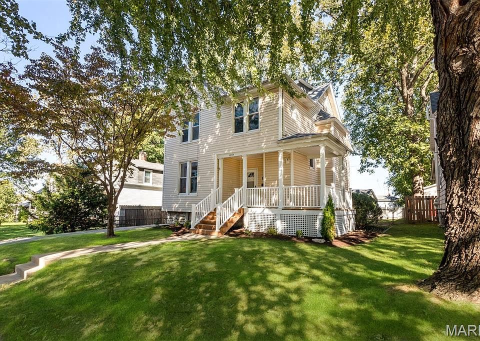 Photos coming 10/23**Established in 1891, this historic Lindenwood Park residence is one of the neighborhood’s rare Victorian survivors—showcasing original 9’ ceilings, bay windows, and a connected front parlor and living room. A graceful double-run staircase leads to a spacious upstairs landing and flexible bedroom layout that beautifully preserves its vintage character. The home offers three bedrooms plus a versatile fourth bedroom or office, along with two stylishly remodeled full baths—one conveniently located on the main floor and the other on the upper level with laundry access. The updated kitchen shines with quartz counters, stainless steel appliances, a gas range, and sleek new cabinetry. Hardwood floors span the main level, complemented by carpet upstairs and fresh paint throughout. Other improvements include a new roof (2025), HVAC (2024), hot water heater (2024) and insulated windows. Step outside to a deck overlooking the level, fenced backyard—perfect for gatherings. And don’t miss the showstopper: an oversized two-car garage with generous driveway and street parking, a rare find in the city! Just blocks from Lindenwood Park and offering convenient access to both city and county amenities, 6953 Arthur blends history, comfort, and everyday livability in one beautiful package.