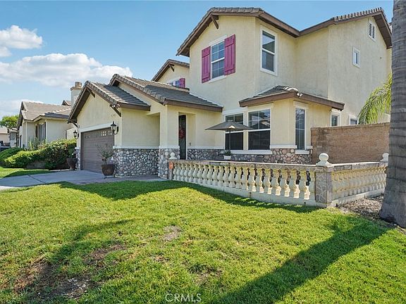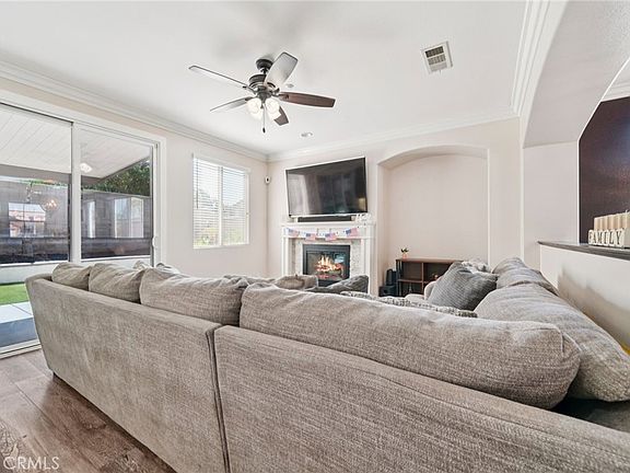 refaced mantel fireplace and it is open to the amazing family kitchen with a big breakfast bar on the waterfall style island designed with dramatic veined quartz, lots more cabinets through the kitchen, and a breakfast nook area. Open the custom made 112 inches double glass sliding doors to the back yard & covered patio with double fans, recessed lighting, artificial turf area, and dog run with custom gates. Enjoy a paid off water softener system for the entire home. Located in a convenient area of North Fontana as it is close to schools, walking distance to parks and very close to many amenities. This is a must see to appreciate!