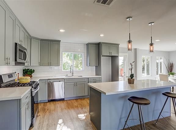 Stunning remodel! Completely renovated 3BR, 2BA in quiet La Mesa neighborhood. Light and bright, modern open floor plan with chefs kitchen, and spacious living room, perfect for entertaining. Beautiful laminate floors and recessed lighting. Large backyard, with fenced in pool, newly built gazebo, and large grapefruit tree. Great location close to Lake Murray, SDSU (2.2 miles), Mission Valley, Cowles Mountain, and more. Option to take over alarm system ($40/month). Owner pays $100/month for pool maintenance (pool guy comes weekly, every Monday). Pool does not have a heater. Newer A/C (1 yr old).