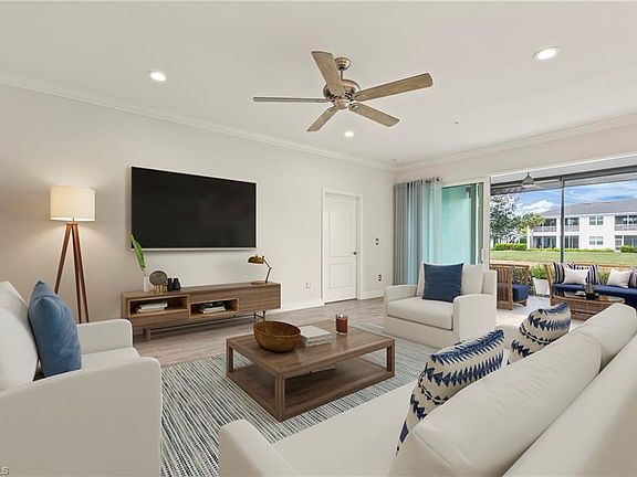 This first-floor property in Avalon boasts the best view and is reminiscent of a model home. It is conveniently situated just off Davis Blvd in one of Naples’ highly sought-after gated communities. This well-maintained 2-bedroom, 2-bath home offers a perfect blend of luxury, comfort, and convenience. Within a few minutes' drive, residents can access white-sand beaches, premier dining, and the shopping hub of 5th Avenue South, epitomizing the quintessential Florida lifestyle. The home features an open-concept layout that welcomes an abundance of natural light and is adorned with elegant designer finishes. Its kitchen is equipped with quartz countertops, stainless steel appliances, and custom cabinetry, making it ideal for both entertaining and everyday living. Additionally, the property boasts a private screened lanai with lush tropical landscaping and unobstructed views of the serene lake and fountain. Constructed with hurricane-impact windows and doors, the home also includes a spacious attached garage, smart home upgrades, and energy-efficient systems. Residents of Avalon can indulge in resort-style amenities such as a heated pool, sundeck, grill area, and clubhouse. The HOA encompasses basic cable/internet, water/sewer, waste management, pest control, and landscaping maintenance, offering a hassle-free living experience. This property is an ideal choice for a seasonal retreat or year-round residence, providing easy access to everything Naples, FL has to offer, including the renowned Naples Pier, pristine beaches, 5th Avenue, 3rd Street South, Tin City, marinas, grocery stores, and more.