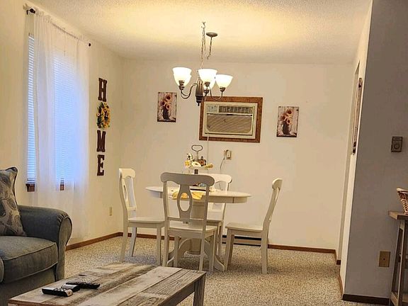 Lawn care, snow removal, Parking available for 2 vehicles.Ceiling Fans in Dining area and both bedrooms. Blinds on all windows. Coin-operated laundry located in basement.