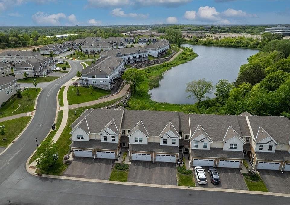Welcome to this exquisite executive townhome, perfectly situated to offer unparalleled views of serene pond. This residence is designed for modern living featuring a bright and open concept layout complete w/ stainless appliances, granite counters, pantry, center island, mudroom and lofted ceilings. Sun drenched kitchen and dining opens to living room w/ cozy gas fireplace which makes way to private maintenance free deck overlooking the picturesque pond! Upper level features spacious primary bedroom with large walk-in closet and private en suite. Two additional bedrooms, 2nd bathroom (full) and convenient upper laundry complete this level.