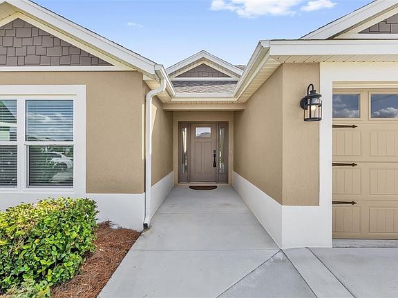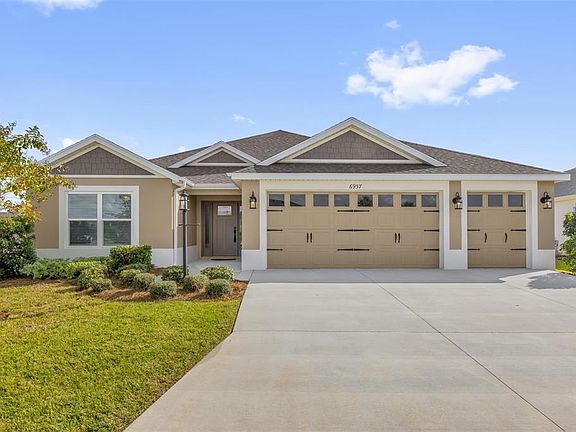 One or more photo(s) has been virtually staged. Fully Furnished and Priced to Sell 3/3 DOVE-C Model with HUGE BACKYARD—Your Blank Canvas for the Ultimate Outdoor Oasis! Welcome to 6957 Minchew Circle in the desirable Village of Lake Denham! This beautifully maintained 3-bedroom, 3-bath DOVE-C model is being sold FULLY FURNISHED AND TURNKEY, making it easy to move right in and start enjoying The Villages lifestyle from day one. Step inside to an inviting open-concept layout with a spacious kitchen offering room for an island, a generous dining area, and a bright, comfortable living room—perfect for relaxing or entertaining. The front guest suite includes a bedroom and full bath that can be closed off with a pocket door from the foyer, providing ideal privacy for guests. A second guest suite offers its own en-suite bath and walk-in closet for added convenience. The owner’s suite, tucked quietly at the back of the home, features a dual-sink vanity, walk-in Roman shower, and a large walk-in closet. The laundry room includes a sink with cabinetry and can be closed off when not in use. An oversized two-car garage with a golf cart garage provides plenty of room for storage and your Village adventures. But the true standout is the huge backyard—a rare find in this area—ready to become your personal paradise. There’s ample space to add a pool and hot tub, outdoor kitchen, or your own custom landscaping to create the ultimate outdoor retreat. Ideally located near all the shopping, dining, and recreation that make The Villages famous, this move-in ready home offers comfort, style, and endless possibilities. Turnkey living and a blank canvas backyard—this one has it all!