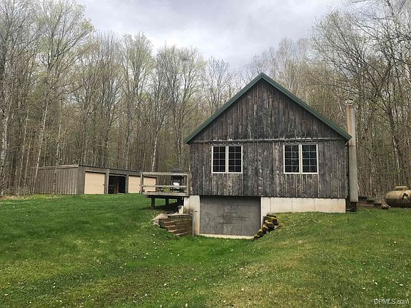 All you need is your clothes and your gun! Completely turn-key hunting cabin, off-grid home or year- round house this property has it all. Absolutely, beautiful heavily wooded 80 acres with hardwood forest. Property is set up with everything you need for making maple syrup with the main boiling stove and a finishing pot. The cabin has 2 bedrooms, 1 bath, open concept Kitchen, living room, dining area with a sleeping loft. Freestanding fireplace in the main room, metal roof, drilled well, electric and a holding tank septic. 40’ x 20’ 4 stall garage for storage of all your toys and did I mention that the furniture stays, along with the fishing boat, 2 4-wheelers, lawn tractor and split and stacked firewood on-site. Trails throughout the property with 3 nice hunting blinds. Direct access to the ATV and Snowmobile trail and adjoining 1000’s of acres of commercial Forest lands.