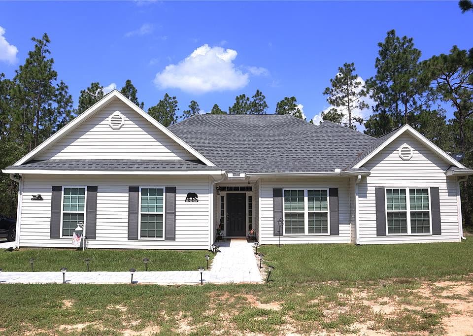 WHY WAIT for a new construction home. Indulge in tranquility and serenity with this exquisite 2021 3-bedroom, 2-bathroom residence situated in the central hub of Ocala's renowned horse country, a mere 10 minutes from the World Equestrian Center (WEC). Revel in the allure of a meticulously crafted kitchen featuring granite countertops, stainless steel appliances, and an elegant farmhouse sink. The home boasts capacious bedrooms adorned with custom blinds, accentuating the abundant natural light that permeates every corner. Furthermore, the property encompasses 1.16 acres, providing a charming farm ambiance. As a distinctive bonus, the property includes a hot tub graciously left behind by the owners.