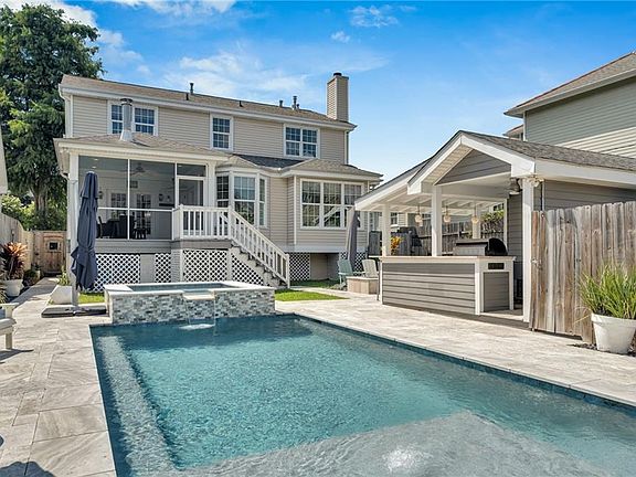 Beautifully renovated classic Lakeview home has it all. This house is immaculate! Spacious primary bedroom down with lovely updated bath and room-sized closet/ dressing area with pretty wood built-ins. Three bedrooms up, including a second primary bdrm. Gorgeous pine floors and 9 foot ceilings down. Open floorplan with extended living area leading out to a fabulous screened porch that is great for entertaining. Open and bright kitchen w/granite counters, SS appliances, and breakfast area. The backyard is a paradise and was constructed in the last few years so everything looks like new! Large heated, saltwater pool and hot tub, built-in firepit, plus outdoor kitchen and bar, sink, fridge, gas grill, surround sound speakers and dressing area with half bath and storage. Tankless hot water heater and termite contract. Parking in rear for at least two cars. Convenient everything....the lakefront, school, grocery, drugstore, bank, gas station, gyms, and restaurants! NEW ROAD COMING SOON! This one is hard to beat!