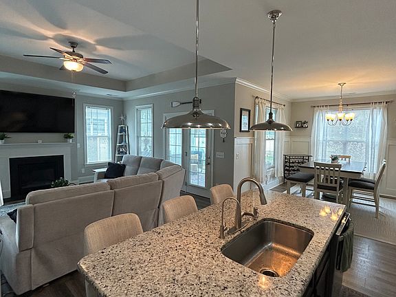 Beautiful modern single story 3 BR, 2bath home in desirable Sunset Ridge community! Spacious open floor plan with plenty of natural light. Inviting front porch, four season sun room and a fenced in backyard with patio, Sun setter retractable awning and hot tub. Living room with fireplace opens to upgraded kitchen with island, granite countertops, stainless steel appliances along with plenty of storage and pantry. Master bedroom has a soaking tub, large shower along with a spacious walk in closet. All rooms have ceiling fans. Separate laundry room with the washer and dryer included. Flooring is wood laminate and bedrooms carpeted. 2 car garage with pull down stairs for attic storage. The house has a reverse osmosis system and water softener, newly upgraded HVAC system that eliminates mold, bacteria and viruses. All utilities are renters responsibility, HOA fees paid by owner includes front yard work, Pet friendly home close to beaches, golf courses, shopping and restaurants. Community pool and club house with gym.