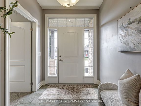 Incredible Value in This Former Model Ranch! Just 10-15 minutes between London and Strathroy, this beautifully maintained all-brick bungalow offers over 1,670 sq ft of luxury living on the main floor. The home features a spacious, open-concept layout with 10-ft tray ceilings, an inviting gas fireplace, and oversized windows that flood the space with natural light. The custom kitchen is a chefs dream - complete with granite countertops, stylish backsplash, under-cabinet lighting, and a large walk-in pantry. The well-appointed 2+1 bedrooms and 3 full bathrooms include a spacious primary suite with a walk-in closet and private ensuite. The professionally finished lower level adds (1135 sq ft) incredible living space with a full bedroom, full bathroom, large windows, and excellent lighting perfect for guests or extended family. Enjoy fully landscaped grounds, a fully fenced backyard, and fantastic outdoor living space including a covered front porch, a large deck, and a custom-built shed. Located in a quiet, family-friendly neighborhood just minutes from the 402, schools, parks, and local amenities. This move-in-ready home offers exceptional value - dont miss this opportunity! One call and you're in! Note: Low property taxes.