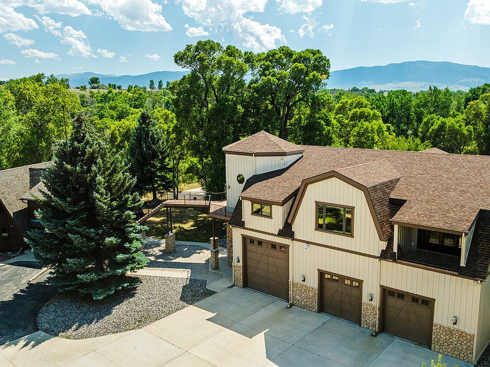 Welcome to the perfect blend of luxury and tranquility at this well positioned creekside property. This private location offers seclusion with convenient town and mountain access for an unbeatable active lifestyle, plus a large, attached shop space for storing your outdoor toys and vehicles. The property spans 4.34 acres with captivating views of Big Goose creek, the Bighorn mountains and surrounding natural spaces. Stepping into the home, you're greeted by an impressive foyer that leads upstairs to a light filled office with outdoor access that connects the two homes. The upper level includes a gourmet kitchen, living room, dining room, primary suite, laundry and a second bedroom. The serene primary suite offers a sitting area, outdoor access, two walk in closets and a luxurious ensuite bathroom. The main level features a family room, third bedroom and bathroom. Outside, unmatched outdoor living space, including creek side paths, a trout filled pond and a quaint two bed two bath guest house. This is truly a property you will fall in love with the moment you arrive. All measurements are approximate....