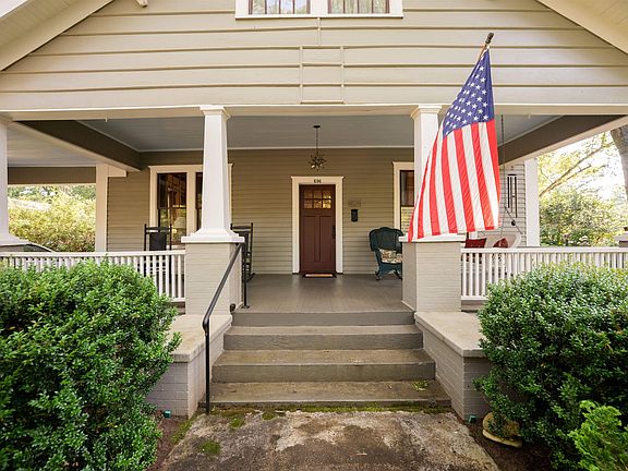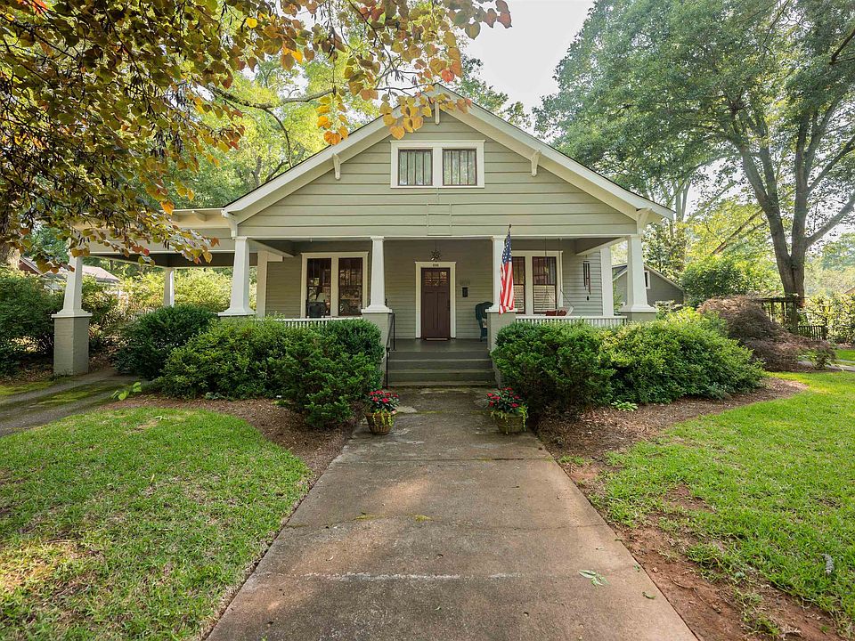 This historic bungalow known as the C.E. Elder house, c. 1920, is on the market for the first time in close to 20 years. With its front gable bungalow form, this has many elements common to the Craftsman style: knee braces in the gable, exposed rafter tails, battered columns set on brick piers on the porch and porte cochere, and paired 4-over-1 windows. It is perfect example of this early 20th century style architecture with its typical prominent porches, and decorative brackets and beams. Located on a tree lined lot, with gardens galore, this home is situated in Madison, Ga's beautiful historic district. The main floor offers 12 ft+ beadboard ceilings, pine floors throughout, plantation shutters, 2 or 3 bedrooms and 2 full baths. The owners' suite has plenty of closet space and large bathroom room with antique claw foot tub and separate tile shower. French doors separate the main living room from the formal dining area. Upstairs you'll find a large, finished bonus room/bedroom, a large, finished storage closet and tons of attic storage space. Enjoy the beautiful backyard from the back porch. The reproduction 2 car garage has a workshop and has a plumbed and wired unfinished upstairs space perfect for an office or in law suite. Original potting shed is situated next to fenced garden area in a picture-perfect setting. The house and property are in impeccable condition and has been meticulously maintained by its current owners. Buyer's agent must be present with client at each viewing to participate in full commission percentage.