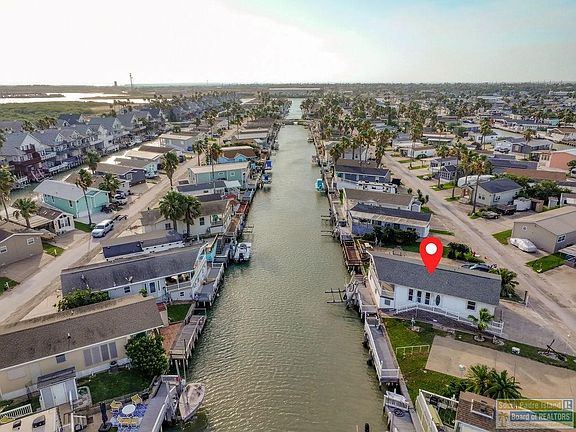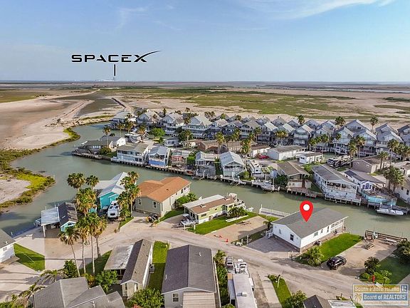 Make your waterfront life a reality! This beautiful 2-bedroom 2 bath cottage home is situated channel front. The large porch is the perfect spot to enjoy watching native birds or boats coming in and out of the channel. Boat lift and slip with spacious deck make it easy to go out on the Laguna Madre Bay or the Gulf of Mexico for a day of fishing. Home has an open concept floorplan with wood veneer flooring throughout, large kitchen bar and plenty of storage. The downstairs space has additional storage or could easily be used for a workshop. Pictures with furniture are virtually staged to help visualize styling options. Home is located in Long Island Village. Amenities include tennis/pickleball courts, basketball, pools, shuffleboard, dog park, onsite restaurant, meeting room and plenty of activities. 18-hole golf course. South Padre Beaches are nearby. Views of SpaceX launches can be seen from your porch! Call to set up your showing today.