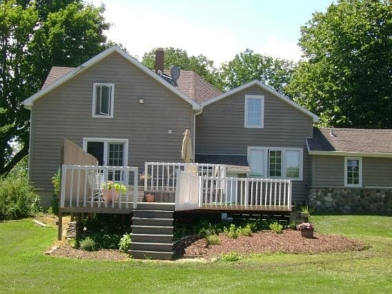 Your family will enjoy this renovated farmhouse on 6.81 peaceful acres. 50 by 40 foot barn, concrete sides, wood roof, 8 stalls, water and electric. Main floor laundry room 12 by 9 feet. Open concept kitchen and family room. Per seller, updates include: 2007 a 2.5 car garage and concrete, 2010 central air, 2005 furnace, 2000 cedar siding. Large deck overlooks backyard. Home warranty included for peace of mind. 2 bonus rooms on upper level each 11 by 8 feet.
