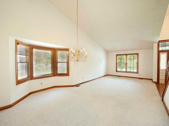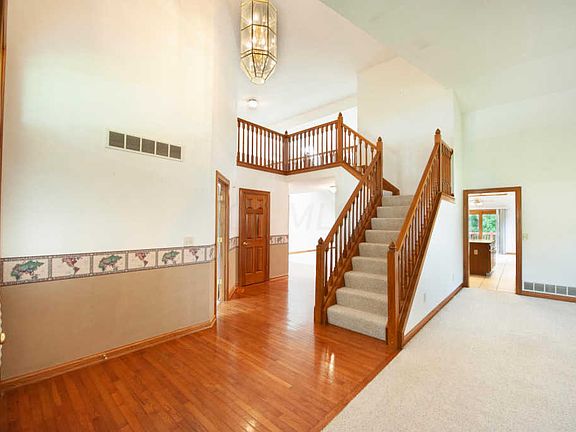 A grand two-story entry with cathedral ceilings and warm wood floors welcomes you to this four-bedroom home in Pinnacle Woods! You will love entertaining in this home with formal living and dining rooms, a generous sized kitchen with center island and adjacent eating space. The family room is accented with a stone fireplace to keep you warm in the coming months and skylights that provide natural light. First-floor owner's suite features vaulted ceilings, whirlpool tub, stand-up shower and a walk-in closet. First-floor den and laundry too! Upstairs are three additional bedrooms and a full bath. Full basement is ready for finishing. Deck overlooking the wooded lot provides a private sanctuary. Amazing location close to schools, bike paths, Sunpoint and Woodside Green Parks, and more! AS IS.