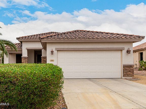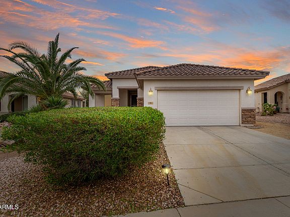 Discover your dream home! This stunning 2-bedroom residence with a den offers a 2-car garage, RV gate, and elegant stone accents. The welcoming front patio leads to a bright living room featuring high ceilings, recessed lighting, and tile flooring. The eat-in kitchen is a chef's delight with granite counters, ample cabinetry, pendant lighting, a tile backsplash, stainless steel appliances, and a breakfast bar.