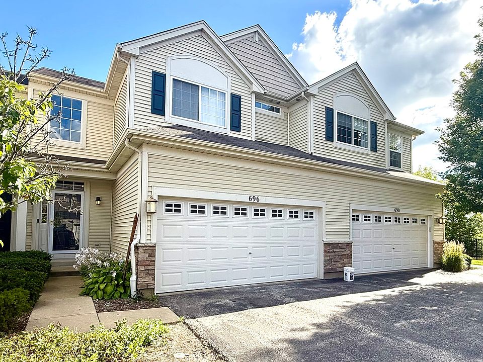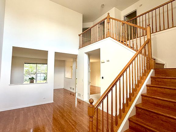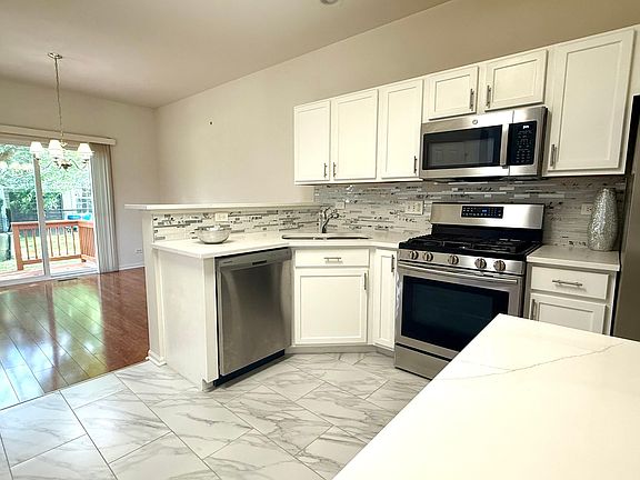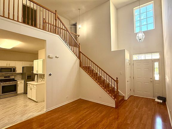 EXCEPTIONAL RENTAL THAT IS HARD TO FIND AND MOTIVATED LANDLORD!! Step into this elegant and beautiful two story 3 bedroom and 2.1 bath townhome available for RENT IMMEDIATELY in Round Lake close to Wauconda, Volo and Grayslake. This spotless and meticulously maintained townhome features an open floor plan with soaring high ceilings that makes a bright and airy ambiance. The modern kitchen, features white cabinets and quartz countertops, stainless steel appliances, tile backsplash and flooring. The kitchen also includes a separate eating area that leads you to the beautiful private outdoor deck which is rare. Stunning floors throughout the main and upper level, high ceilings and a extremely spacious family room, dining room and living room. An eye catching 2 story staircase leading you to the 3 larger size bedrooms upstairs featuring laminate flooring throughout and has freshly painted in neutral tones which makes it feel so bright and lively. The primary suite offers a large custom walk in closet with built-in organizers and a private en-suite bath. This property also includes an oversized 2-car garage, a huge full basement that can be used foe storage or a play are for kids. This unit is conveniently located close to shopping, parks, schools, and the expressways and the Metra. Bright, stylish, and ready to be yours! Association includes water, garbage, exterior maintenance, and snow removal!!