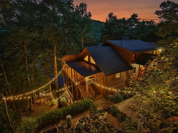 Stunning Lakefront Retreat on Lake Glenville. Don’t miss this rare opportunity to own a breathtaking lakefront home on picturesque Lake Glenville, the highest elevation lake east of the Mississippi. Enjoy refreshing temperatures 15 to 20 degrees cooler than the southern lowlands, making this the perfect mountain lake escape. As you arrive, you’ll find ample parking spaces for both family and guests. Step inside to discover exceptional craftsmanship, vaulted ceilings, and expansive floor To ceiling windows that flood the home with natural light and showcase spectacular views of the lake. The inviting living room features a dramatic stacked-stone, wood burning fireplace and flows seamlessly into the open concept kitchen and dining area, perfect for entertaining. The well appointed kitchen features generous counter space and cabinetry, making it ideal for the family chef. On the main level, the spacious primary suite boasts its own fireplace and a luxurious ensuite bath. Upstairs, you’ll find a private guest bedroom, full bath, and a cozy sitting area, ideal for guests or quiet relaxation. The lower level offers a large den with another stunning stacked-stone fireplace, a guest bedroom and full bath, and a versatile bonus room. Hidden behind a bookshelf, a secret bonus space awaits, perfect for a kids’ hideaway, media room, or game lounge. Outdoor living is just as impressive. A large wraparound covered deck off the main level is perfect for dining, lounging, and enjoying the serene views. The lower level deck offers additional space and access to a convenient outdoor shower. Follow the pathway down to your private boat dock with plenty of room for all your watercraft and lake toys. This prime lakefront location is near one of Lake Glenville’s famous waterfalls, a true natural treasure. The community includes amenities such as a tennis court with pickleball and boat storage. With luxury finishes, multiple living spaces, high speed fiber optic internet, vacation rental options, and the tranquility of lakeside living, this home is the ultimate mountain lake retreat.