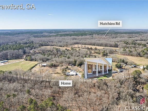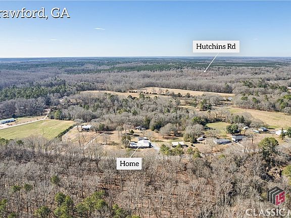Motivated Seller!!! Move-in ready! Fresh paint throughout. Rambling brick ranch on 5.46 acres. Located in the quaint town of Crawford. Three bedrooms and two and a half bathrooms. Formal living room, spacious family room, a large kitchen with tons of cabinets. Formal dining off the kitchen. New additions include office/rec room and another den. Large barn/workshop with electricity with a secondary drive. An additional storage building with electricity.