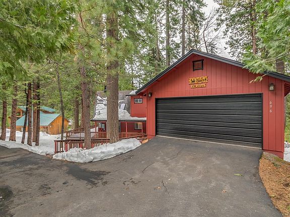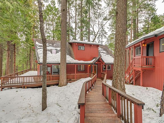 Escape to the Sierra! Walk to the Rec Center from this super clean chalet located in Big Trees Village. The open great room boasts soaring ceilings and large prow windows where you can enjoy all the seasons from the comfort of your mountain getaway. With 3 bedrooms, 2 on the main level and the master upstairs, 2 full baths one with a jetted tub + a loft there is plenty of room for friends and family. The well equipped kitchen has lots of storage and a center island for the kids to gather around for a hearty breakfast before hitting the slopes or nearby lakes! Relax on the expansive deck while reminiscing about the days activities. If you need more space the room under the garage can be simply finished for that game room or movie theater you always wanted. Stay warm with a new furnace and a wood burning stove. Two car garage and circular drive make for easy year-round access. And as an added bonus a generator that will automatically come on if the electricity goes out.