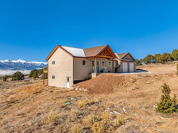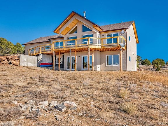 Enjoy mountain living in this exquisite stucco home, newly built in 2022. Nestled on a beautiful lot, this residence offers breathtaking mountain views that can be enjoyed from every room! The main level has an open floor plan with spacious kitchen, granite countertops, stainless steel appliances, and kitchen island with butcher block top. Two-story windows in the living room frame the awe-inspiring landscape making it a perfect gathering space. The primary suite is a true sanctuary, with ensuite bath with spacious tile shower & double vanity. A second bedroom has its own ensuite bathroom, ensuring comfort for family or guests. Practical features include a mudroom with laundry facilities, leading to an oversized garage that is well insulated and heated. The lower level presents an inviting separate living space ideal for guests or potential rental income, including a full kitchen, living area, bedroom and bathroom, all with its own private access. Outside enjoy a lovely stamped concrete deck that showcases the spectacular views and a concrete pad is ready for your future hot tub! Welcome home to excellent year round access, just a short drive from the charming town of Westcliffe.