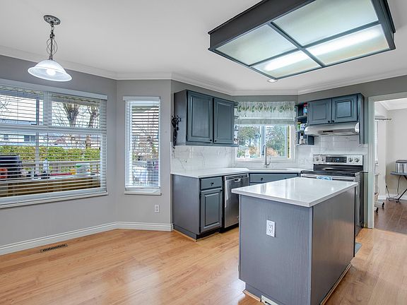 Nestled on a quiet no-through street, this move-in-ready two-storey home sits on a spacious 7,100+ sq ft lot with a back lane in the heart of Newton. Offering five bedrooms, three bathrooms, and a double garage, this home is perfect for families. The patio door opens to a 26x16 sundek, ideal for outdoor living. Upgrades include a renovated bathroom, new windows, roof, furnace (2025), hot water tank (2024), and a whole-house AC system (2025). Inside, you'll find oak spiral stairs, a large oak kitchen with an island, and extra parking for RVs. The fenced backyard offers back lane access, a mountain view from the bedroom, and in back yard. It is also just a 10-minute walk to Newton Exchange, elementary schools, daycare, parks, and a temple. Don't miss out—call today for a private show.