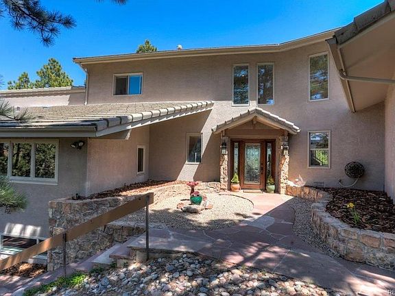 Custom 2-Story on Private Lot w/ Incredible Views; Red Rocks, Dawson & Raspberry Buttes and surrounding mntns. The nearly 1 acre lot borders open space on the side & back. Upper Level hosts a huge Master Retreat w/ sitting area, Jetted Tub overlooking Red Rock Cliffs, steam shower, dual sided fireplace and wine/coffee bar. Main level features a Family Room w/ 3-sided fireplace, Custom Stone Entertainment Center, Wet Bar & VIEWS! The large, light filled, chef's kitchen features custom Schroll cabinets, gas cooktop, warming oven, instant hot water & large pantry. The living & dining rooms have wood burning fireplace & open to a covered deck. Main floor bedroom w/ full bath PLUS powder room. Large Pantry & Laundry Room on main level. Walk-out basement features 2 beds, full bath and den with wood burning fireplace and Gym (bonus space). The backyard has the best views...decks, patios, hot tub, water feature. Hiking & Bike Trails out the front door or Golf Cart to Perry Park Golf Club.