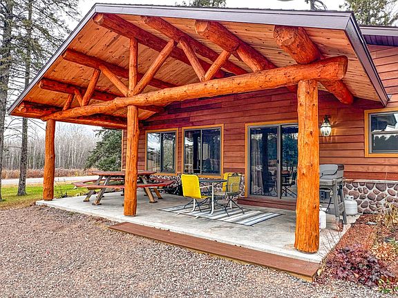 Rustic charm meets modern comfort at this beautiful single-story 3BR, 1BA Northwoods retreat on 1.38 acres complete with a massive 2,800 sq ft heated & insulated shop! The home welcomes you with its log-beam front & covered patio, perfect for morning coffee or end-of-day relaxing. Inside, enjoy a warm knotty-pine interior, open-concept layout, and in-floor heat throughout. The spacious kitchen features a center island with seating, rustic cabinetry, and a pantry for added storage. Patio doors lead to outdoor living spaces, including one from the primary bedroom. The impressive heated shop includes overhead doors on each end, multiple service doors, a wood stove, office, kitchenette, half bath, bonus room, and a 14x56 lean-to for extra storage. This commercially zoned property with ample parking offers direct ATV/snowmobile trail access, many nearby lakes & public land including the Flambeau River State Forest, Tuscobia Trail, and nearby restaurants all within walking distance!