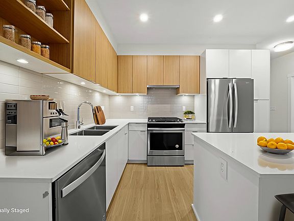 Open concept layoutGreat natural lightKitchen features quartz countersGas stoveStainless steel appliancesIsland with bar seating