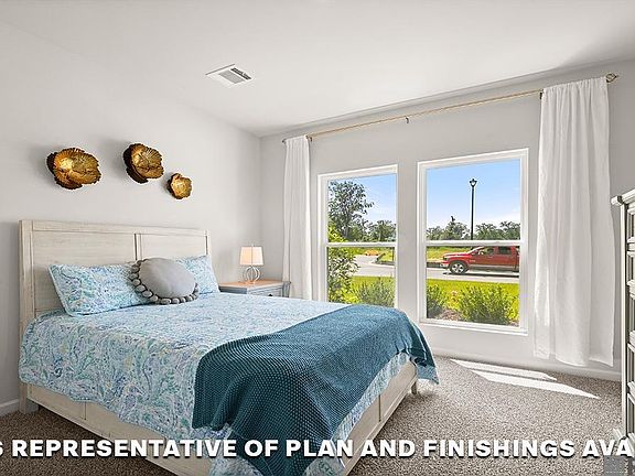 Welcome to the Eastwood floorplan, a single-story home available in Brook Hollow, a new home community in Zachary, Louisiana. There are 3 impressive exteriors to choose. Step inside 4-bedroom, 2-bathroom residence to find 1,555 square feet of living space. The layout includes two bedrooms, a guest bedroom, and a hallway leading to another bedroom with the HVAC system and linen closet. The open concept living area features a well-equipped kitchen with shaker-style cabinets, gooseneck pulldown faucets, stainless-steel Whirlpool appliances, and 3 cm granite countertops. A large corner pantry and separate laundry room add to the functionality of the space. The dining room is conveniently located next to the kitchen, while the living room is nearby, ensuring a seamless flow between the two areas. All bedrooms are provided with cozy carpeting and a convenient closet. Whether you need a place for entertainment, organization, welcoming guests, relaxation, or fitness activities, you can be sure of feeling comfortable and content. Situated at the rear of the residence, the primary bedroom comes complete with its own en suite. The primary bathroom showcases a dual vanity, a tub/shower combination, a generous walk-in closet, a separate linen closet, and a separate water closet. Get in touch with us now and schedule a tour of the Eastwood today!
