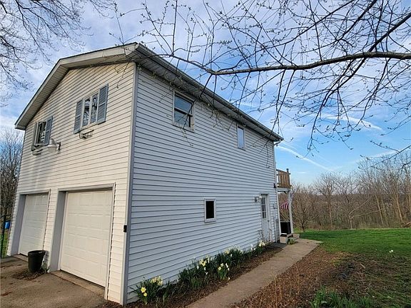 Privacy Awaits! Wonderful chalet style home W/ 2 car garage nestled on 5 gorgeous acres of mature trees lilacs and raspberries! Ride Your horses or 4 wheelers through the nature filled wooded trails! wide open floor plan! family room with triple window & new laminate floors, sliding door leads to 2nd story balcony W/ magnificent sunsets every night! Country blue kitchen W/ new appliances, deep stainless steel sink and laminate floors, main bedroom W/ceiling fan and 2 windows, full bath with new sink , pergo floors & built in linen closet, stairs lead down to covered deck overlooking your piece of natures paradise, heated garage fully insulated and drywalled, new overhead doors with openers, Plenty of room for expansion in the garage for additional living sq ft new 10x15 shed, new roof, fresh paint throughout, cable tv high speed internet, pm come see your dream home