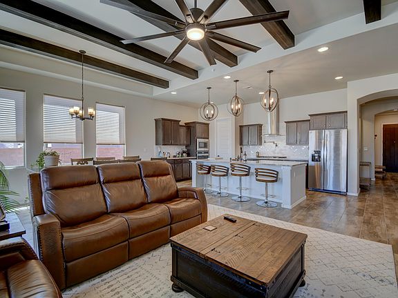 This stunning single-level home in Lomas Encantadas offers an open-concept floorplan on a spacious ⅓-acre lot with no neighbors behind, providing privacy & breathtaking views. Built by Hakes Brothers in 2019, it feels like new & features 3 bedrooms + a versatile flex space, perfect for an office, study, or 4th bedroom. The home boasts 8' doors, raised ceilings, & wood ceiling beams, enhancing the airy feel and natural light. The gourmet kitchen includes a large island & pantry, ideal for entertaining. Step outside to a fully landscaped backyard with a covered patio & hot tub, included in the sale. Energy-efficient with owned solar panels & Silver Level Green Build certification, this home offers both luxury & sustainability. One of the largest lots in Lomas Encantad