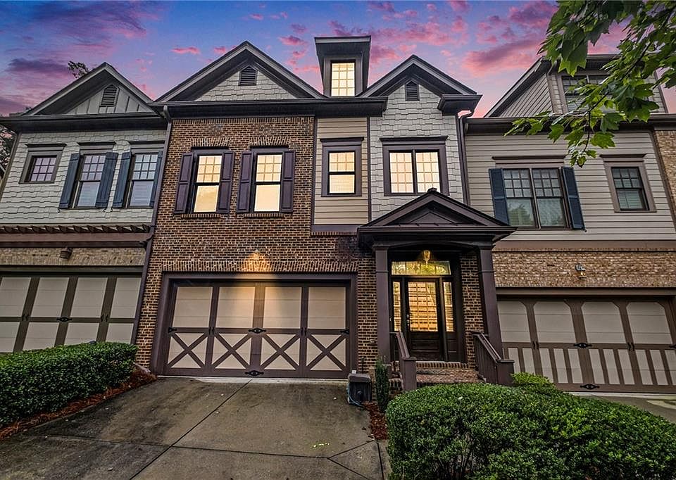 Welcome to 6961 Fellowship Lane, a stunning and expansive 4-bedroom, 4.5-bathroom townhouse nestled in the highly sought-after Sterling on the Lake community. From the moment you enter this resort-style, golf cart-friendly neighborhood, you'll feel right at home with its lush landscaping, scenic trails, and inviting amenities. This spacious residence offers a beautifully designed open concept floor plan featuring 10-foot ceilings and custom trim work throughout. The heart of the home is the chef’s kitchen, boasting white cabinetry, a massive island, granite countertops, stainless steel appliances including a gas cooktop, and a generous walk-in pantry. The adjacent family room is both cozy and elegant, with a fireplace and custom built-ins—perfect for relaxing or entertaining. Upstairs, the primary suite is a true retreat with a sitting room, spa-like bathroom with double vanity, jetted tub, tiled shower, and a huge walk-in closet. Two spacious secondary bedrooms each feature walk-in closets and direct access to bathrooms, offering privacy and convenience. A loft and laundry room complete the upper level. The top floor adds even more living space with a theater room, home office, and abundant storage. The fully finished terrace level is a showstopper, featuring a game room with bar and pool table, a full bath, bonus room, and an additional bedroom—ideal for guests or multi-generational living. Enjoy all that Sterling on the Lake has to offer: an Olympic-sized pool with waterslide, tennis courts, fitness center, basketball court, clubhouse, playgrounds, and a private 45-acre lake for fishing and kayaking surrounded by scenic nature trails and community fire pits. Conveniently located just minutes from I-985, shopping, dining, and top-rated schools—this exceptional home truly offers luxury living in one of Flowery Branch’s most vibrant communities.