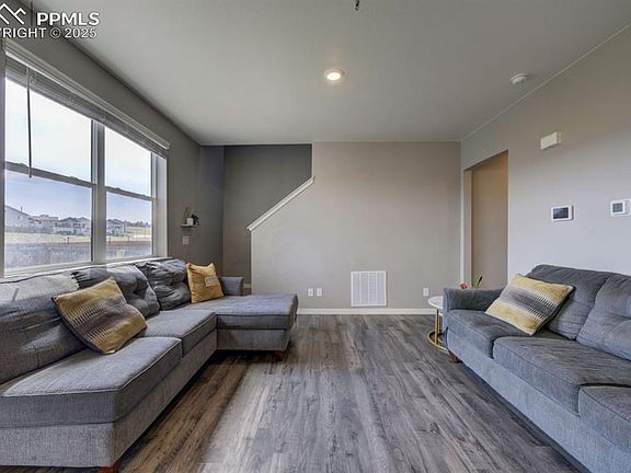 Welcome to your new Colorado home with breathtaking mountain views and gorgeous sunsets! This open floor plan features luxury vinyl flooring, a stunning kitchen with white cabinets, granite counters, subway tile backsplash, and stainless-steel appliances.Enjoy an extended patio, fully fenced yard backing to open space with trails and a playground. Upstairs offers 3 bedrooms PLUS a loft, a spacious owner’s suite with walk-in shower, and convenient laundry.Bonus perks: tankless water heater, 2.5 baths, and a 2-car garage. Easy commute to Fort Carson & Peterson AFB! THE GLASS IN THE BACKYARD will be replace.