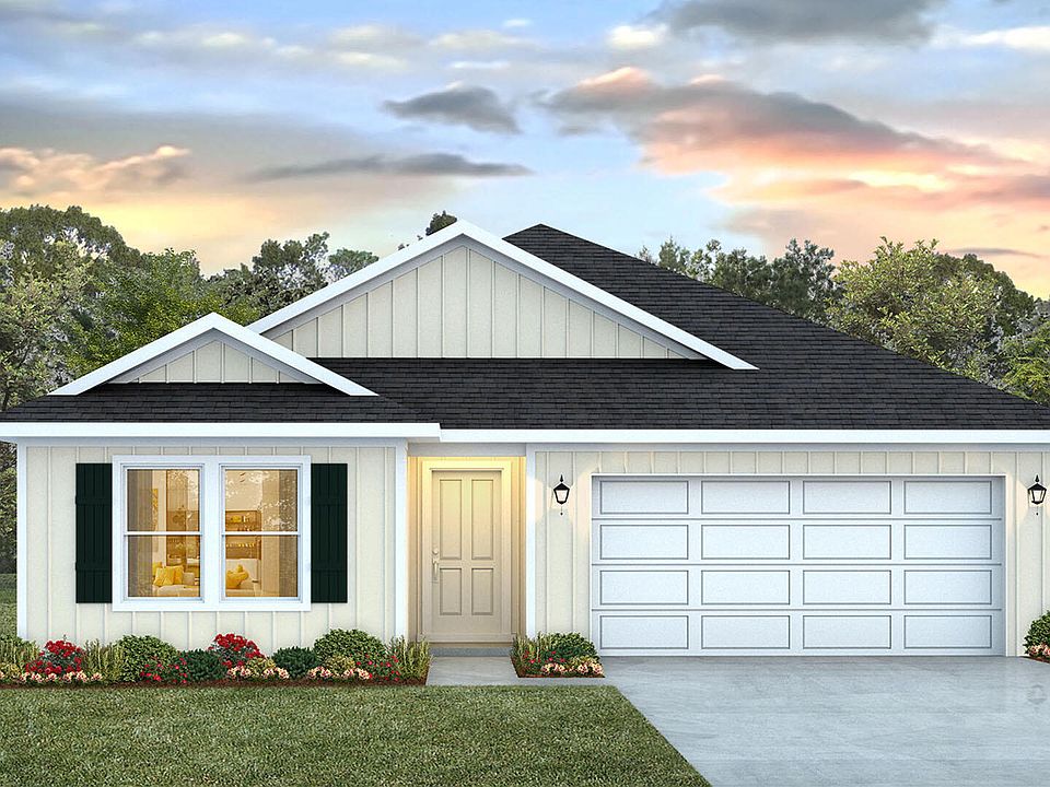 Welcome to the Creekside, a new home floor plan at Liberty in Panama City, Florida. The Creekside is a thoughtfully designed one-story home with a large open floor plan. This 5 bedroom, 3 bath home has 2,043 square feet of spacious, comfortable living. Inside the Creekside you will see 9' ceilings throughout, engineered vinyl plank flooring in the main areas of the home, and soft carpet in the bedrooms. Elegant granite countertops and white cabinetry in the kitchen and bathrooms make a stylish addition to the home. A spacious open living room, kitchen, and dining room make hosting your friends and family easy. The kitchen has a center island that is perfect for serving meals and the stainless-steel appliances include smooth top range, microwave, and dishwasher.