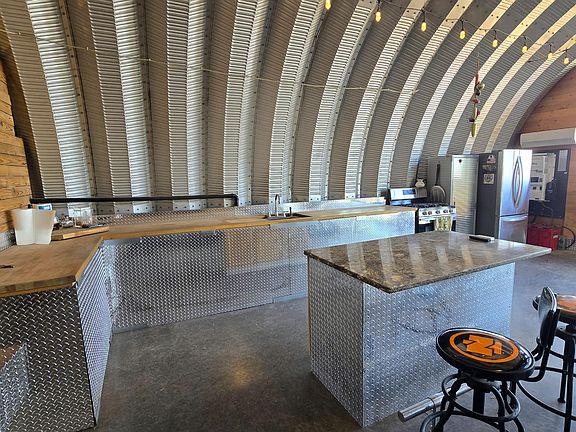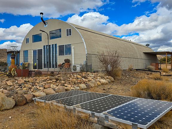 Explore this one-of-a-kind 10-acre desert retreat on the desirable east side of Stagecoach Trails at Santa Fe Ranch. The higher elevation offers lush vegetation; Juniper and Palo Verde Trees and a variety of desert cacti. This 1,800 Sq. Ft. Quonset style home offers an open concept design and is permitted as a 2 bedroom home. Features spacious living area, upstairs loft, a cozy wood / cook stove, propane stove, two refrigerators, instant water heater, concrete flooring throughout, (3) minisplit heatpump AC units, and (4) separate 3,500 watt and (1) 2,000 watt solar systems, and 7,500 gal. of water storage. The 1,000 gallon septic system is designed for a 3-bedroom home. Double carport and (2) metal storage containers offer plenty of storage. The property includes a view deck and fenced courtyard for enjoying the picturesque mountain views. Quonset home advantages: Energy efficient, non-combustible, durable, strong, and weather-resistant. 1,800 Sq Ft of open floor plan with 15ft high ceilings, adaptable for lofting. Build out this home with up to 3 bedrooms with lots of living space left.