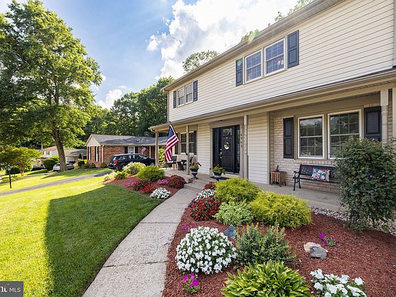 This meticulously maintained home welcomes you at first sight. The covered front porch beckons you to take a seat. Premium lot - lush, green grass, actual flat space AND backs to woods. This 4 bedroom, 2 and a half bath home with one car garage is ready for you to move in. Upon entering, you will notice a feeling of calm. Hardwood floors and custom paint throughout the home. Curl up in front of the gas fireplace in the living room or join in with everyone else in the expansive 38' x 12' family room addition. This house gives you everything you need to include an office space on the main level. You're sure to create many memorable meals in the gourmet kitchen. A GE 5 burner gas stove, Bosch dishwasher, deep double porcelain sink, coffee bar, and tons of granite counter space make it easy for more than one cook at a time. The breakfast bar seats 5. Light fills the family room from newer windows and three skylights. A lovely counter and wine fridge make this space very comfortable. An Andersen slider opens to the deck. The deck runs the length of the house offering plenty of space for entertaining. The lawn meanders down toward the woods connecting to walking trails. There is also a hot tub (2023) with privacy fence and a 12'x12' she shed/man cave. that has plenty of storage and electricity. All bedrooms have hardwood floors and ceiling fans. All bathrooms have been remodeled and updated. Primary bath has XL shower. Laundry chute! Lower level has a 250 sq ft finished bonus room with dry bar and wine fridge. The rest of the basement is currently being utilized as an exercise room, laundry area and storage with shelves .NEW custom paint on main level 2022 NEW roof 2019, NEW front door 2020, NEW HVAC 2020,. Hot water heater 2016. Close to major commuter routes Fairfax County Pkwy, 495, 95 and 66. West Springfield HS Pyramid and German Immersion Program at Orange Hunt Elementary OPEN HOUSE on Sunday 16 JUL 1-4 PM.