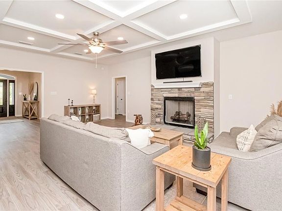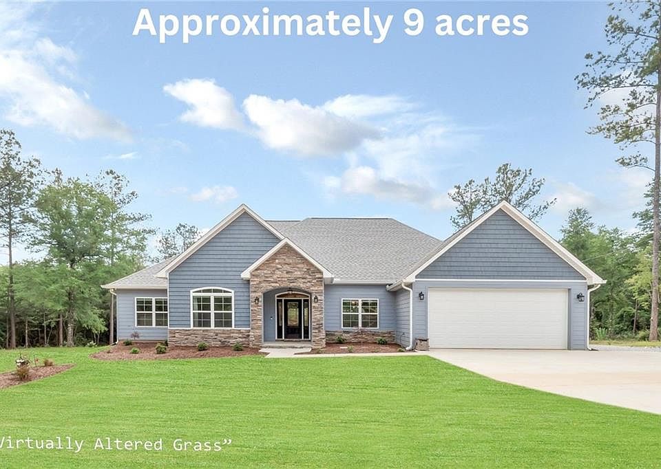 Approximately 9 beautiful acres with cleared riding trails throughout the acreage for tons of enjoyment. This LIKE NEW home offers 2,461 square feet with 4 bedrooms, 2.5 bathrooms, split bedroom floor plan, attached 2 car garage and so many additional amenities and features. Greet your guest in this home's large foyer with coat closet and access to the spacious ?? bathroom. Relax and enjoy the living room with stunning coffered ceiling, stone fireplace with gas log, lots of windows allowing you to overlook the back acreage and the access door to the covered back patio. There is a formal dining off the foyer and kitchen area with lots of windows allowing you to overlook the front acreage of the property. This home's open concept kitchen and breakfast room are spacious. This kitchen offers a center island breakfast bar with sink, lots of granite countertops and cabinets for storage, stainless appliances, gas range, plus a walk-in pantry area. The spacious breakfast room just off the kitchen offers lots of windows allowing in natural light and a view of the back acreage. The primary bedroom is spacious and secluded from the rest of the house, offering a double tray ceiling, lots of windows and a walk-in closet. The primary bathroom is lovely with a large double sink vanity area, walk-in custom tile shower with 2 shower heads, private water closet, and walk-in closet. The additional three bedrooms are all spacious with nicely sized double door closets and great views of the property's acreage. Step into the house from the garage into the mud room. Just off the mud room is the laundry room with folding station and tons of cabinets for storage. Other features are the smooth ceiling and durable LVP flooring throughout the house, lots of recessed lights and tankless water heater. The owner has planted 40 Leyland Cypress trees on the east side of the property that will grow 5 feet per year for a maximum height of 40 to 60 feet high by 20 to 25 feet wide, ensuring additional privacy for years to come. Located 15 minutes or less from the heart of Saraland with easy access to Semmes and Interstate 65, or Interstate 165. This property offers the best of both worlds'. private living on a large parcel of beautiful land with plenty of space to roam, while also being close to shopping, restaurants, etc. So call today and let's make this acreage and beautiful home your family's New Beginning. The Seller will provide an American Home Shield Home Warranty at close of sale. All updates per seller. Listing company makes no representation as to accuracy of square footage; buyer to verify. 2023-08-14