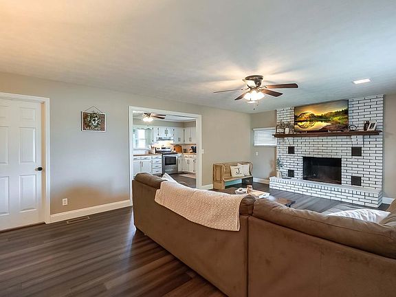 Move in ready 3 BR 2 Bath brick ranch on full, partially finished basement. The interior of home has been completely updated. Main floor has all new engineered hardwood. The updated Eat in kitchen is very spacious with stainless steel appliances. The living room has a beautiful fireplace that could easily hold ventless gas logs. Nice size laundry on main level with washer and dryer staying. The hallway bathroom offers double vanity sinks. The primary BR has an on suite bathroom featuring a tile walk in shower. The finished space in the basement could be used as a 4Th bedroom or den, playroom or office space. There is a wood burning fireplace, nice bar area, Plenty of storage space and 1 car garage. The back deck is screened in overlooking nice level yard that is partially fenced. This property also offers a 2 car detached garage with electric and half bath with a finished area that would make a perfect man cave. There is a seperate metal pole barn in front of the detached garage that could be used for work shop or garage area. Beautiful country setting and conveniently located right off 127.