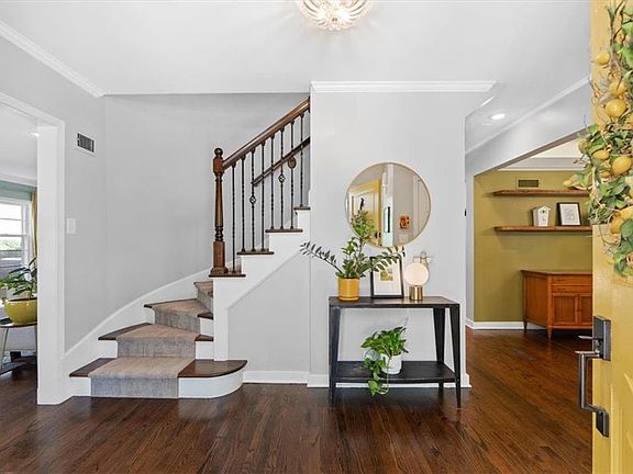 ALMOST 3,000 SQUARE FEET IN ROMANELLI GARDENS! (plus an additional 1,000+ sq ft of unfinished basement) Situated on an oversized corner lot, this STUNNING brick 2 story home welcomes you with timeless charm as you enter through the expansive front porch into a joy-filled blend of modern amenities and character. 3+ Bedrooms (4th non-conforming), 2.5 baths and RARE 2 car attached garage. This home encompasses so many hard to find features in older neighborhoods including: exceptional flow, multiple bonus rooms, great natural light, multiple outdoor entertaining areas including one of the best covered front porches in the area! Updated kitchen includes new fixtures, hardware, added peninsula, travertine tile heated floors (RARE!), double laminated countertops w/ Brazilian White Perana Dolomite Marble, plus a full slab marble accent wall! In addition to the spacious kitchen, main level also includes formal living room with cozy gas fireplace, formal dining room, 1/2 bath, and family and game room off the back. All bedrooms are located on 2nd floor. Primary suite boasts newer zero entry shower, double vanity and quartz countertop, and all newer fixtures and lighting; hall bath has custom tub and floor to ceiling tile. Bedroom 4 (non-conforming) is accessed through bedroom 3 - could also be used as an office or playroom. Primary bedroom also has a versatile bonus room that can be used as a 2nd office or nursery! Additional updates include: hardwoods refinished in 2017, added ceramic brick accent walls to fireplace & game room, dual zoned smart HVAC system with humidifier and dehumidifier replaced in 2022, and newer mini split HVAC system in bonus room. Storage space and built-in shelving galore throughout the home including a walk-in cedar closet! Outside, the backyard beckons you to relax beneath the shade of a magnificent EVERGREEN magnolia tree and to entertain on the expansive deck. Smart sprinkler system! A rare find in one of Brookside's favorite subdivisions!