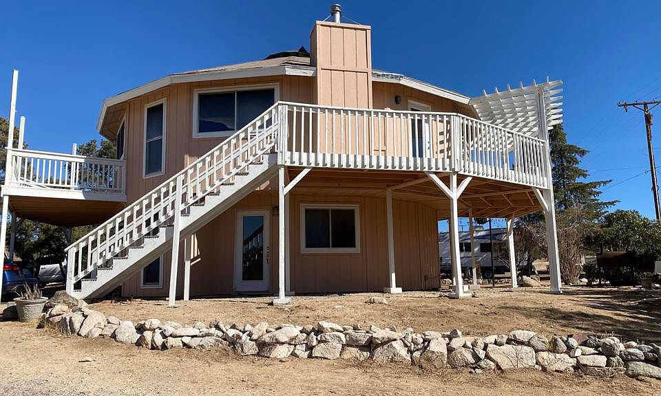 This unique 2 story Eagle Nest design home sits on 1 acre lot plus 2 additional acres included in the sale. Features an awesome wraparound deck on the second story that lets you enjoy either from inside or outside, the fabulous panoramic views. Second floor features master bedroom and a guest bedroom both with glass sliding doors and two full bathrooms. Downstairs includes 2 additional rooms another guest bedroom and bathroom. Don't wait make this property your very own heaven in the mountains!