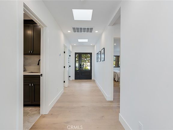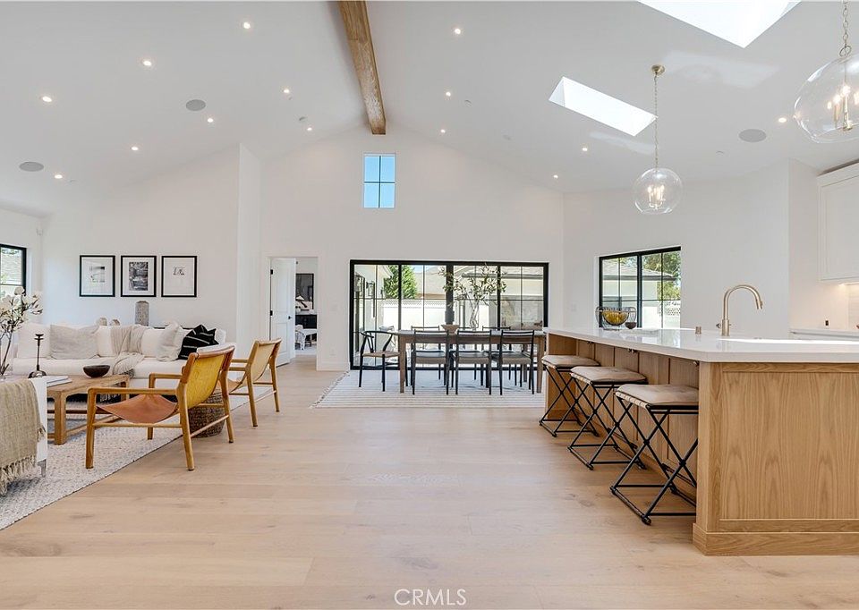 Upon entering, you are welcomed by the wide entryway to the stunning great room. The vaulted ceiling with wood beam and skylights in the great room enhances the warmth of the living accentuated by an abundance of natural lights. It enchants you with the bright open floor plan that joins living, dining, kitchen, minibar and outdoors to create a flowing space that is ideal for entertaining. White oak floors, custom cabinets, all new fixtures & lighting, and built-ins are just the start of a long list of details that will delight every home buyer. The gourmet chef’s kitchen includes professional grade appliances, artistic designed range hood, quartz island, floating shelves, and walk-in pantry. The master bedroom offers direct access to the deck, walk-in closet and ensuite bathroom with double vanities, soaking tub, custom glass frame shower and private toilet room. The guest room can be utilized as home office, study corner or activity room. The remaining two bedrooms with dedicated closets share a stylish jack and jill bathroom that is ideal for families with kids or frequent guests. The finished two car garage has sliding doors that can be used as a bonus room for gym, entertaining, and office.