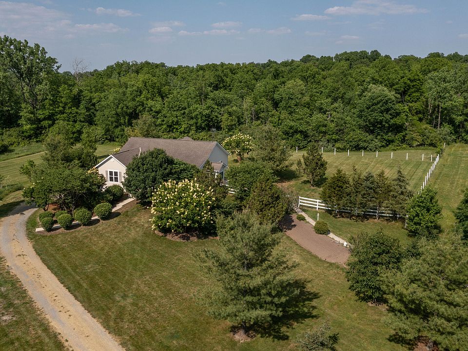 A secluded, tranquil, nature lovers' property like this one doesn't hit the market often, so be sure and check this one out. This stunning 3 bedroom, 2 bath home is nestled on almost 18 acres of pasture/tillable/wooded land, a pond and with mature trees, the home cannot be seen from the road. The house has 9' ceilings, spans 2,248 sq ft and features a full basement with high ceilings, providing ample room for storage or potential living space. For those in need of extra space or seeking add'l amenities, there is a 40x24 insulated outbuilding on the premises. This versatile space has many potential uses and was most recently utilized for dog breeding, with a dog kennel like set up and features interior cages and outdoor runs. This outbuilding includes heat, water and a kitchenette. In addition to the outbuilding, there is a 40x24 pole barn, with a concrete floor, offering even more storage space or the potential for housing livestock or farm equipment. Back inside the home, the kitchen offers Cherry cabinetry, with a tin copper backsplash, creating a charming and elegant atmosphere. The kitchen offers a pantry, amazing flooring, and a breakfast table area, perfect for enjoying your morning meals while overlooking the picturesque surroundings. All kitchen appliances convey with the home. The family room measures 20x20 and features cathedral ceilings and walls of windows. These windows offer breathtaking views of the expansive property and allow natural light to flood the space. The large owner's suite is a private retreat, complete with an owner's bath and a spacious walk-in closet. The house is equipped with geothermal heating/cooling, whole house and outbuilding generator. Overall, this property offers a combination of modern amenities, beautiful interior finishes, and an expansive piece of land with various potential uses. It provides a serene and secluded lifestyle while just 20 minutes to the Marysville Honda Plant, 47 minutes to Columbus & 53 minutes to WBAFB.