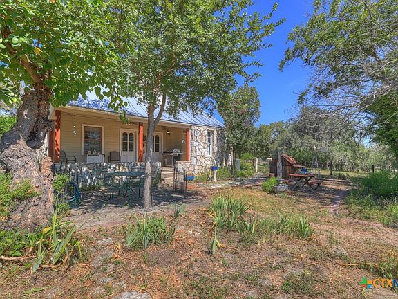 Welcome to a little bit of Texas history in the hill country!! This one of a kind property is one you surely do not want to miss. This stunning cottage originally built in 1878 by pioneer William Ernest von Specht, was totally remodeled in 1994 keeping its historical charm while adding modern conveniences. On this vast property canopied with mature oak trees you will notice several outbuildings including the original barn. Inside the home you will notice beautiful hard wood floors and a cozy country cottage feel. Adorning the home are gardens of wildflowers and plants native to the area. Enjoy mornings and/or evenings sitting on one of the two porches overlooking the beautiful grounds and hill country views. Words cannot describe all the unique details of this historical property. You have to see it in person! This versatile home would be a great primary residence, long term rental, or guest house. Plenty of room to build another dwelling as well. You can also take advantage of a beautiful River Park with access to the Guadalupe river and a neighborhood park with a pool. All furniture and appliances convey with purchase of home.