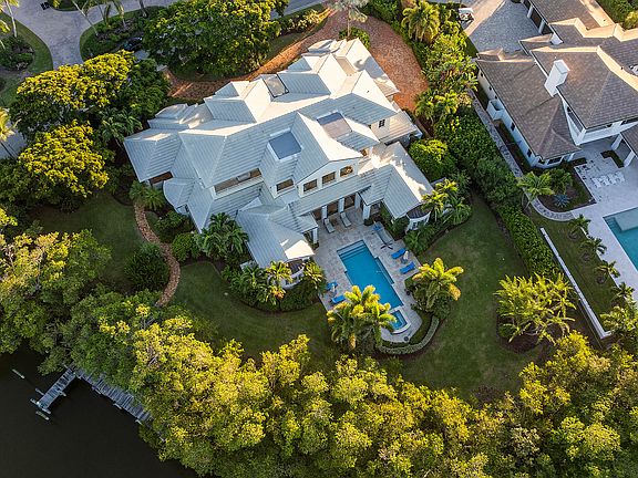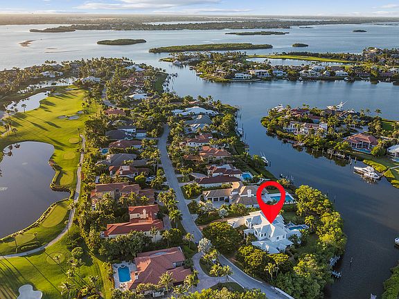 Situated within the exclusive community of Sailfish Point, this exceptional waterfront estate showcases 252 feet of direct water frontage with immediate ocean access. Set on a spacious corner lot, the property offers complete privacy and features a well-equipped dock-perfect for enjoying the South Florida lifestyle. The residence features 4 bedrooms, 5 full bathrooms and 2 half baths, in addition to three fireplaces. A stylish bar anchors the living room, while the eat-in kitchen provides a bright, comfortable setting for everyday dining. Expansive doors open to a large covered terrace designed for relaxing and entertaining, complete with a fully equipped summer kitchen. Natural light accentuates the sweeping staircase leading to the second level, which is entirely dedicated to the primary suite. This private retreat includes a generous bedroom, dual bathrooms & closets, a sitting room, office, studio and a large balcony overlooking the pool, landscaped grounds, and tranquil harbor.
