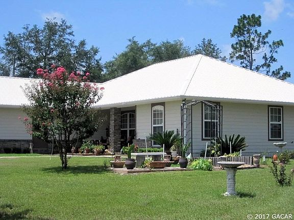 An offer has been accepted. Backups welcome. This lovely home on ten acres has a metal roof, and brick and hardiboard construction. It's freshly painted inside like new. There are three large bedrooms, each with a full bath and over-sized closets. The floors are polished wood thru-out and the home is loaded with upgrades - insulated windows, R-38 insulation, security system, Trane 13 Seer AC system, extra irrigation well, covered back porch the length of the house, and two new glass doors from the porch into the house. Inside, the ceilings are high, but low enough to keep you energy bills low (seller says usually less than $150/month). The living and kitchen area is open and inviting, with upgraded appliances and lots of counter space. The porch area is fenced off from the rest of the property to contain kids and pets, or could be a perfect place for a pool or to keep your garden safe from the deer that roam the property. Outside, there are raised garden beds, a storage shed, and a 26 x 31 barn large enough for four stalls and all your farm equipment. the property is fenced and cross fenced. Taxes are low, high speed internet is available and the property is convenient to Gainesville, Lake City, and I-75. Qualifies for USDA loans.