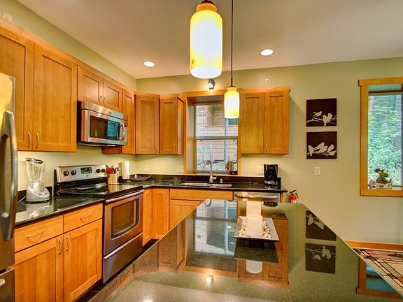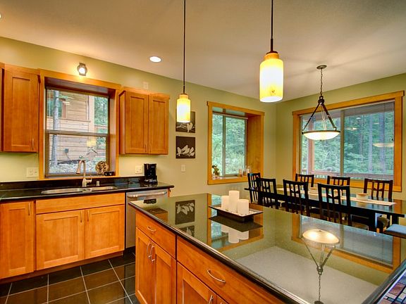 Remarkable custom built home! 2496 sq. ft. with custom cabinets, granite counter tops, two wood burning fireplaces with stone work, & wood trimmed windows. Downstairs has a huge recreation room with bar, pool table, fireplace, lounge area plus storage. Master bdrm has walk in closet, bathroom with shower & tub. Works like a 4 bdrm house, over sized bdrms don't have closets. Privately sits on high point with all day sun. Deck has beautiful beam work. Huge sunny deck to entertain on middle floor.