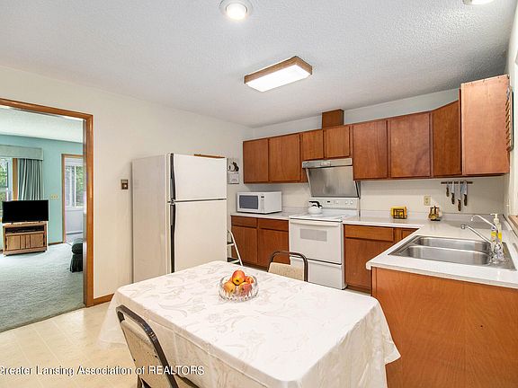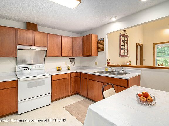 Welcome home to 6969 E Clark Rd! This 3 bedroom, 2.5 bath home is situated on a large 3.48 acre parcel in Bath, MI. A large bright living room greets you upon entering and leads into a spacious kitchen overlooking the dining room. The dining features tall cathedral ceilings and a wood stove. Down the hall you'll find 2 bedrooms, 2 full baths, an office, and a bright sun room! The 1st floor owner's suite features a large walk-in closet and a private bath. Upstairs you'll find a family room, a 3rd bedroom, and a half bath. The partially finished basement features a nice family room with knotty pine and a fireplace. Outside a large deck overlooks the picturesque backyard! Additional features of this property include: a metal roof, an attached 2 car garage, and a storage shed!