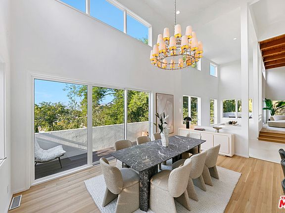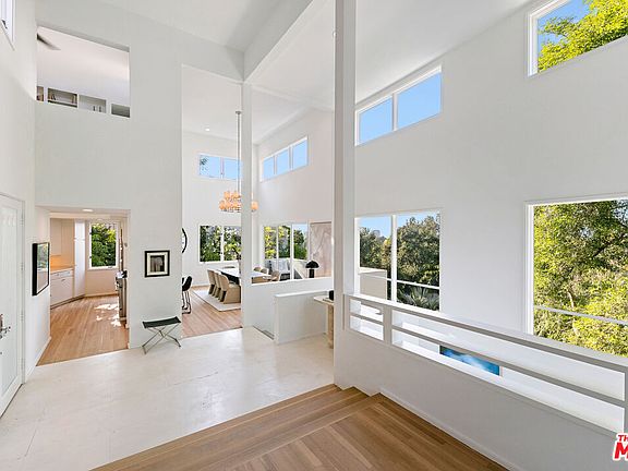 As the 1980s came to a close, this architectural home was built to capture the essence of the decade. Perched in the Hollywood Hills, 6969 Woodrow Wilson offers sweeping views of the San Fernando Valley while being just minutes from it all. Inside the nearly 3,500 sq ft home, the vast entry hall immediately conveys the magnitude of its soaring two-story-plus ceilings, creating a gallery-like space ideal for large-scale artwork. The cozy upper loft level, which includes an ensuite, is illuminated by clerestory windows that frame the distant Santa Mountains. The main level seamlessly combines a spacious living room, dining area, open kitchen, and intimate built-in nooks. Recently refinished solid oak floors bring warmth and complement the all-white walls. Designed for both entertaining and everyday living, the home boasts multiple outdoor decks, a spa, and lush landscaping. The lower level, including the oversized primary suite with sliding glass doors opening to the backyard, offers privacy and tranquility. With just two previous owners, the home remains a well-preserved example of its era, offering a timeless design.
