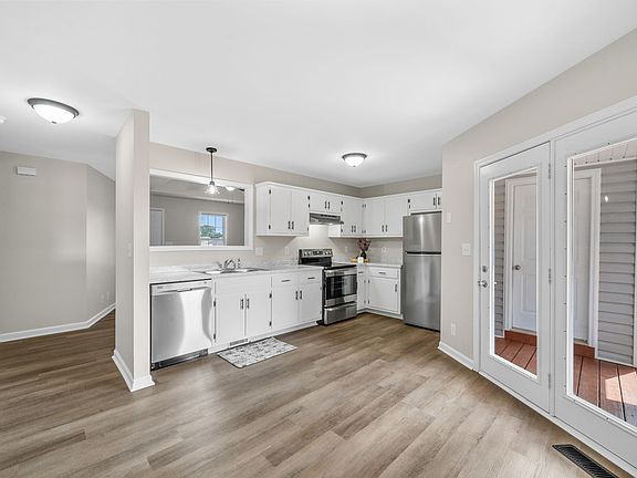 Welcome Home! This charming home is move in ready and features 3 bedrooms, 2 bathrooms, Livingroom, spacious eat in kitchen and freshly painted through out. New laminate flooring, No carpet. Stainless steel appliances. Large yard with no backyard neighbors. Deck at rear door for relaxing. Must See!